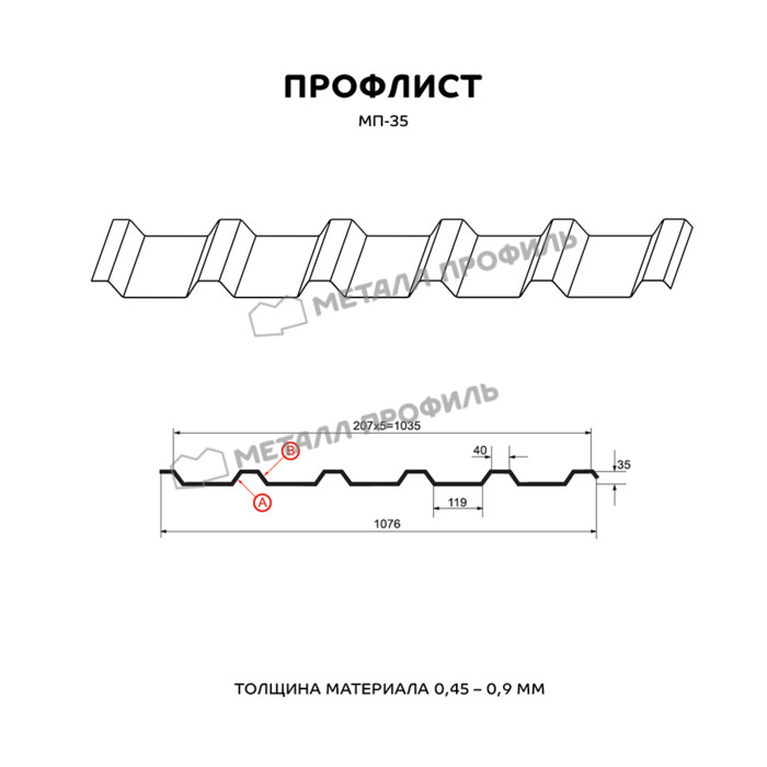 Профлист Металл-Профиль МП-35 ECOSTEEL® 0.5 мм Белый Камень
