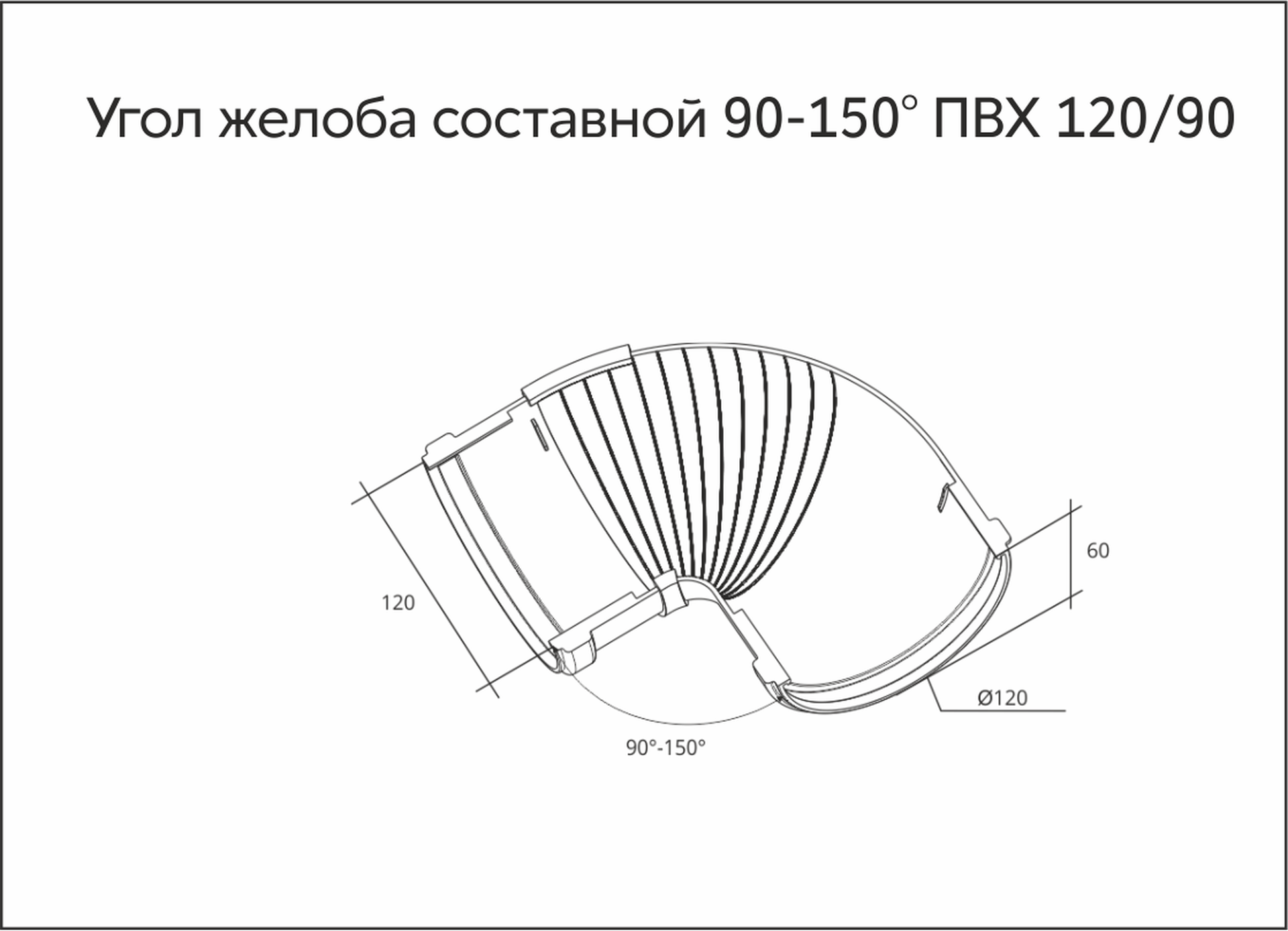 Угол желоба составной 90-150 град. ПВХ Grand Line графит (RAL 7024)